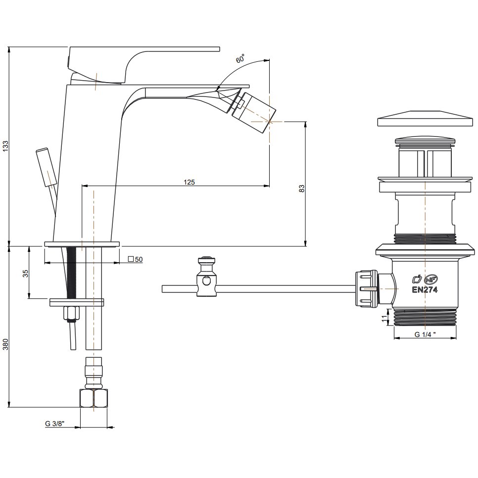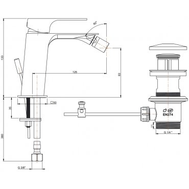 PAINI VENTI MEZCLADOR MONOMANDO BIDÉ CON DESAGÜE AUTOMÁTICO