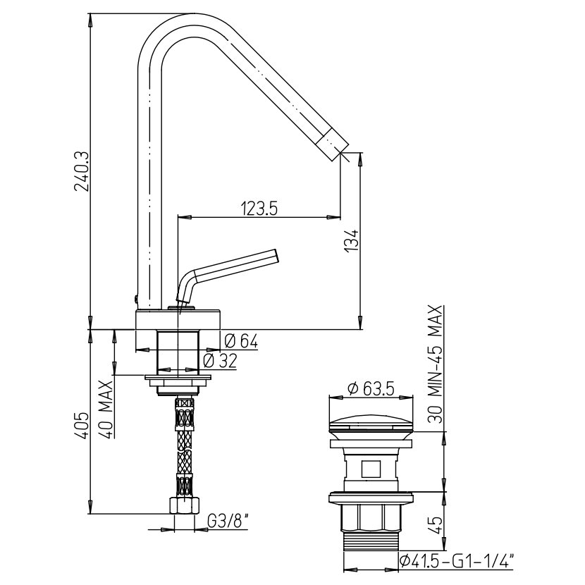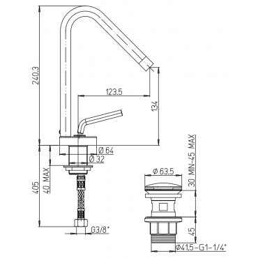 BUGNATESE TESS MEZCLADOR LAVABO SIN DESAGÜE CON FLEXIBLE CROMADO