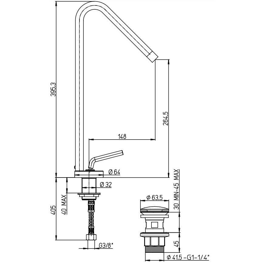 PAINI PIXEL NEW MEZCLADOR MONOMANDO LAVABO ALTO, DESAGÜE CON TAPON CLICK-CLACK