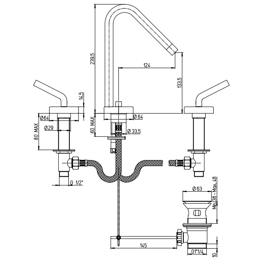 PAINI PIXEL NEW BATERÍA LAVABO CAÑO GIRATORIO CON DESAGÜE AUTOMÁTICO