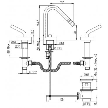 PAINI PIXEL NEW BATERÍA BIDÉ CAÑO GIRATORIO CON DESAGÜE AUTOMÁTICO