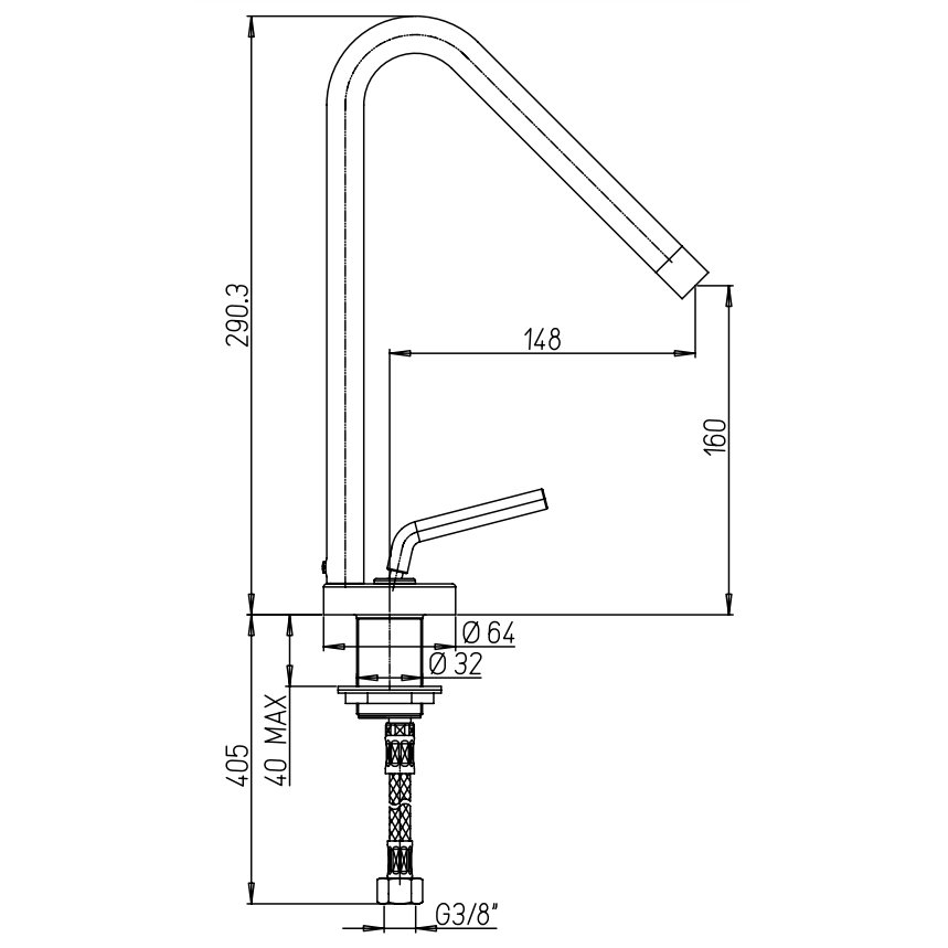 PAINI PIXEL NEW MEZCLADOR MONOMANDO FREGADERO CON CAÑO ALTO GIRATORIO