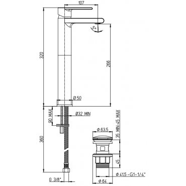 PAINI GHIBLI MEZCLADOR MONOMANDO LAVABO ALTO, DESAGÜE CON TAPON CLICK-CLACK