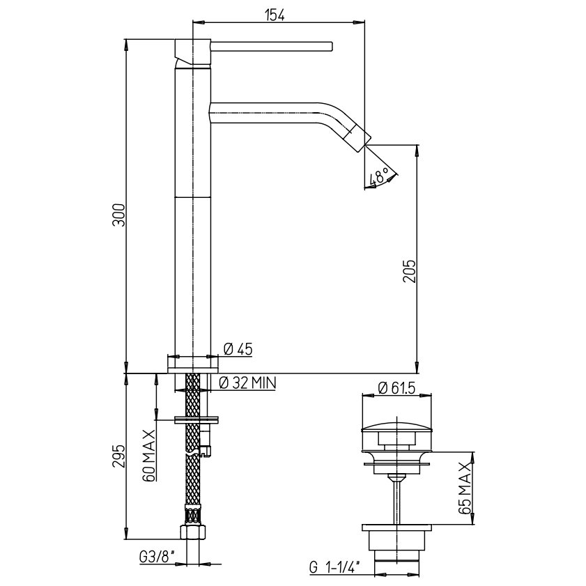 PAINI COX MEZCLADOR MONOMANDO LAVABO ALTO, DESAGÜE CON TAPON CLICK-CLACK