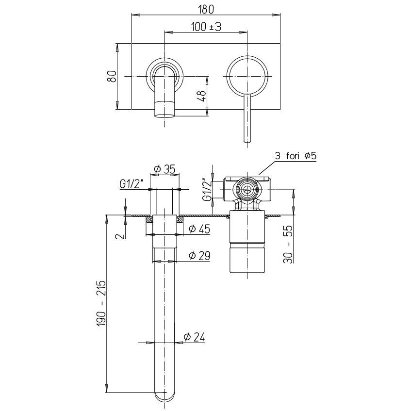 PAINI COX MEZCLADOR MONOMANDO EMPOTRABLE PARA LAVABO CON PLACA Y CAÑÓN DE 215 CM
