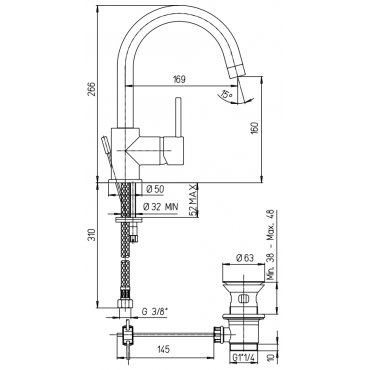 PAINI COX MEZCLADOR LAVABO CON CAÑO TUBULAR GIRATORIO, DESAGÜE AUTOMÁTICO