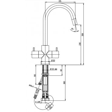 PAINI COX MEZCLADOR FREGADERO CON CAÑO ALTO GIRATORIO Y DUCHA EXTRAÍBLE