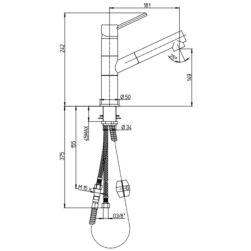 PAINI COX MEZCLADOR MONOMANDO FREGADERO CON DUCHA EXTRAÍBLE 2 FUNCIONES
