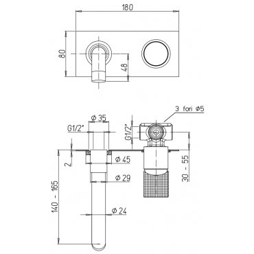 PAINI COX GRIP MEZCLADOR EMPOTRABLE PARA LAVABO CON PLACA Y CAÑÓN DE 165 CM
