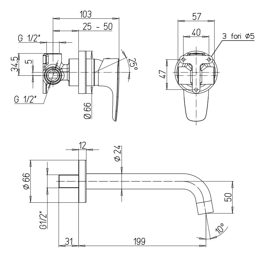 PAINI PARALLE MEZCLADOR MONOMANDO EMPOTRABLE PARA LAVABO