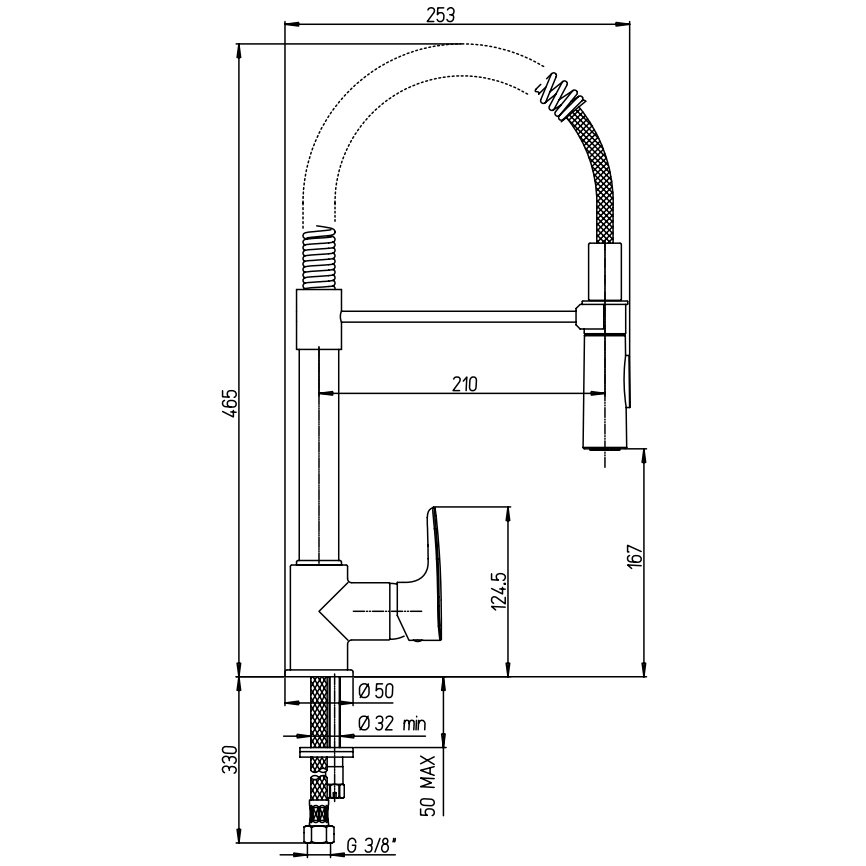 PAINI PARALLE MEZCLADOR MONOMANDO FREGADERO, CAÑO A RESORTE GIRATORIO