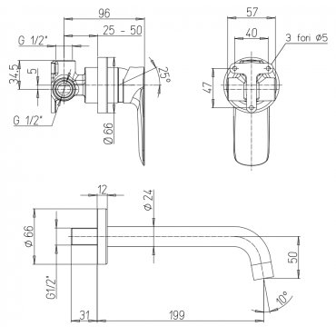 PAINI NOVE MEZCLADOR MONOMANDO EMPOTRABLE PARA LAVABO
