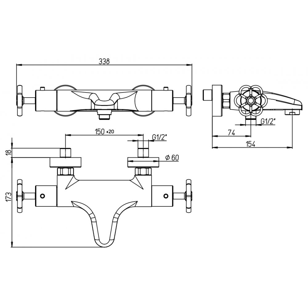 VEMA RUBINETTERIE LYS MEZCLADOR EXTERNO DE BAÑERA CON DESVIADOR CROMADO