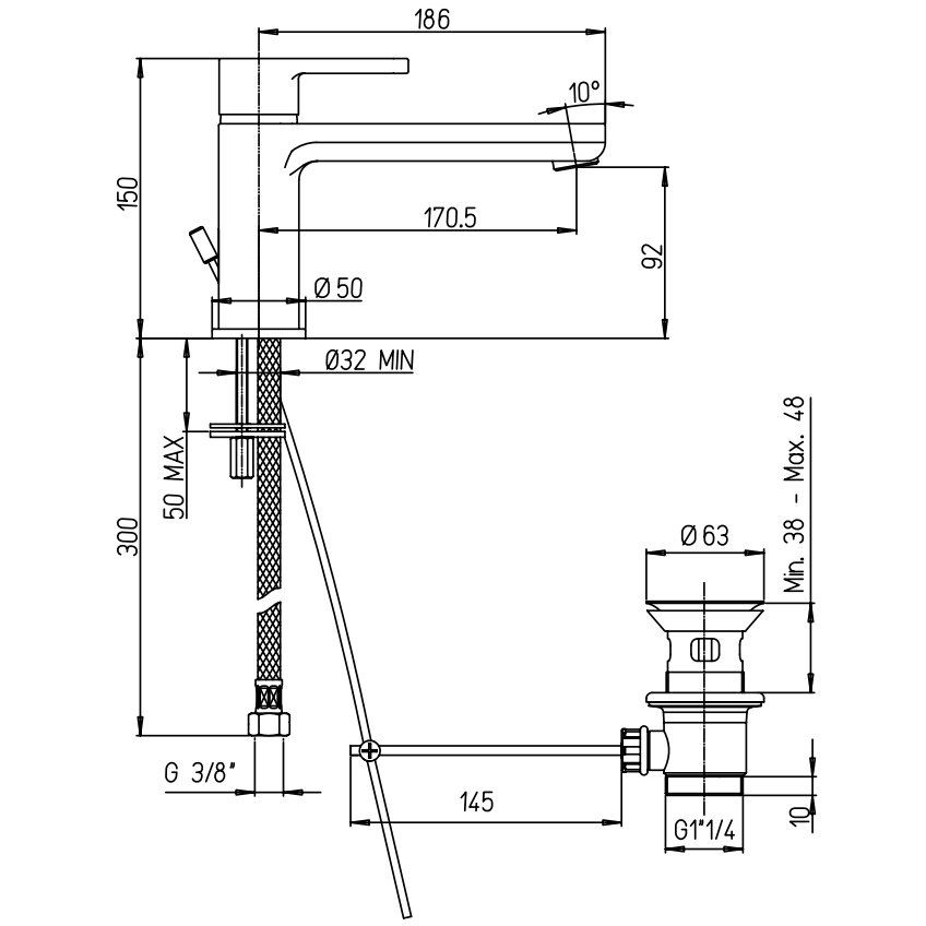 PAINI ARENA MEZCLADOR LAVABO CON PALANCA LARGA Y DESAGÜE AUTOMÁTICO