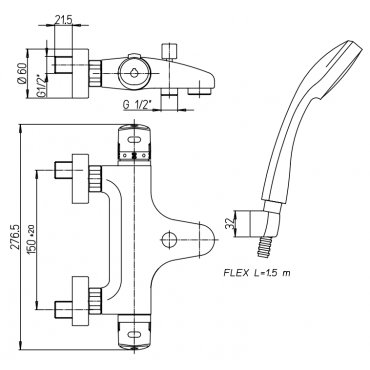 PAINI ATOMIX 3.0 MEZCLADOR TERMOSTÁTICO BAÑO-DUCHA MURAL CON EQUIPO DUCHA, SOPORTE FIJO cromo cromado D1CR100TH