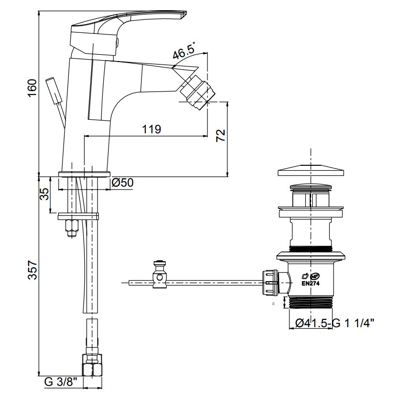 PAINI ATOMIX 3.0 MEZCLADOR MONOMANDO BIDÉ CON DESAGÜE AUTOMÁTICO