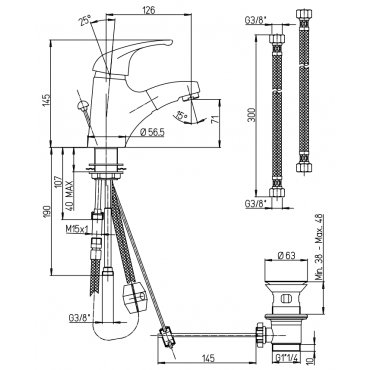 PAINI CRETA 100 MEZCLADOR LAVABO CON CAÑO EXTRAÍBLE, DESAGÜE AUTOMÁTICO