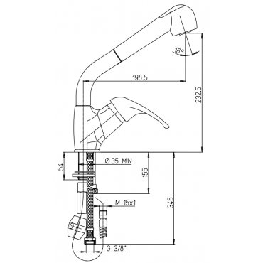 PAINI CRETA 100 MEZCLADOR MONOMANDO FREGADERO CON DUCHA EXTRAÍBLE