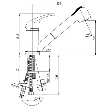 PAINI CRETA 100 MEZCLADOR MONOMANDO FREGADERO CON DUCHA EXTRAÍBLE