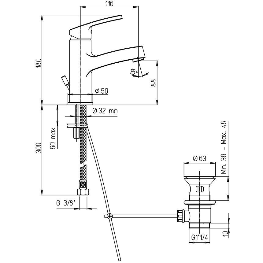 PAINI MIURA MEZCLADOR LAVABO CON DESAGÜE AUTOMÁTICO