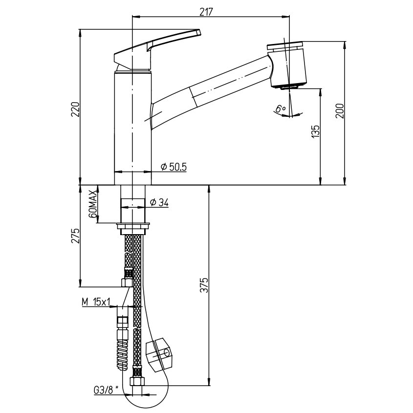 PAINI MIURA MEZCLADOR MONOMANDO FREGADERO CON DUCHA EXTRAÍBLE
