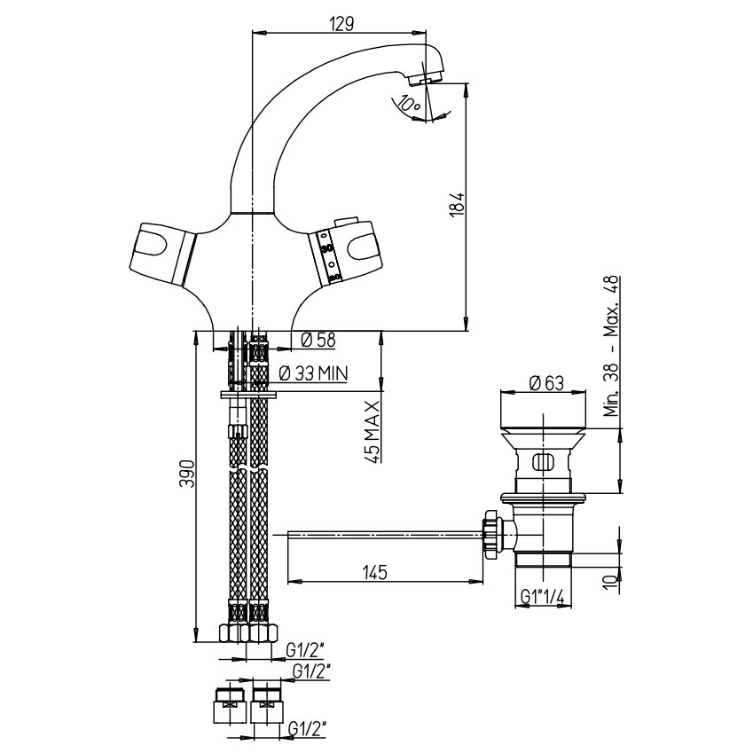 BUGNATESE KOBUK MEZCLADOR LAVABO CON EXTENSIÓN Y DESAGÜE CROMADO