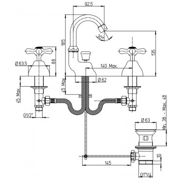 PAINI LIBERTY BATERÍA BIDÉ CAÑO GIRATORIO CON DESAGÜE AUTOMÁTICO