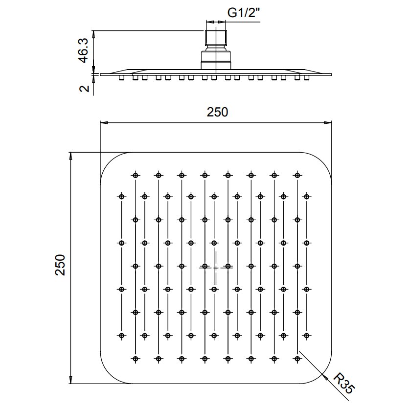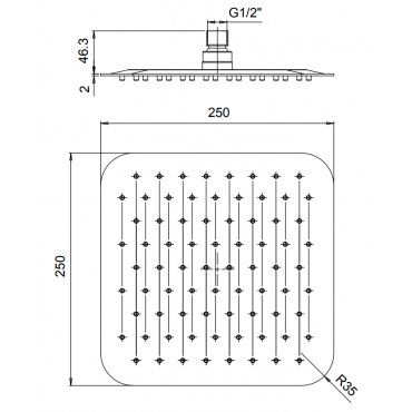 PAINI CABEZA DE DUCHA ANTICAL DE ACERO INOXIDABLE 250X250 MM ULTRAPLANA