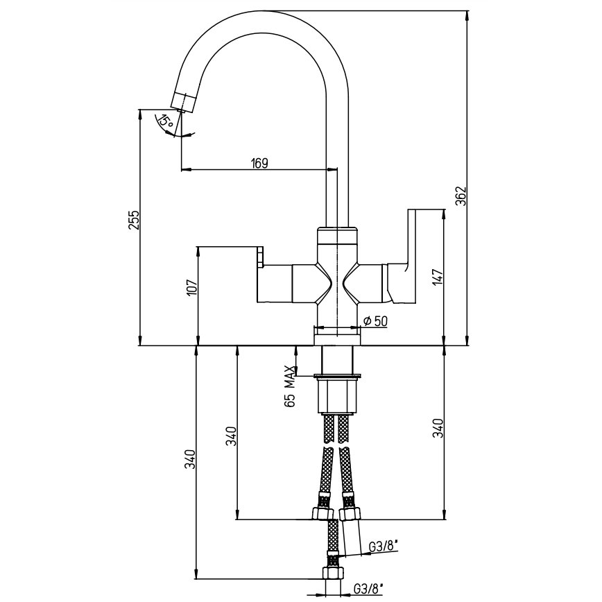 PAINI MEZCLADOR MONOMANDO FREGADERO 3 VÍAS CON CAÑO TUBULAR
