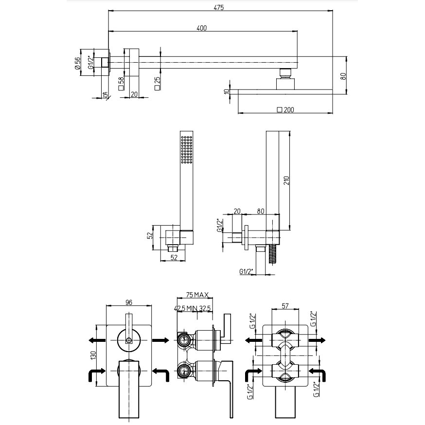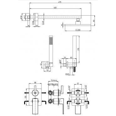 GABOLI FRATELLI STORM MEZCLADOR PARA BAÑERA EMPOTRADO CON DESVIADOR Y DUCHA