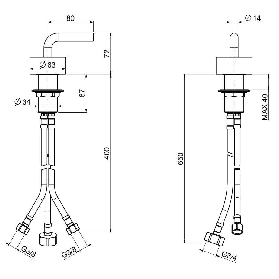 Todos los caños de lavabo y bidé están equipados con aireadores de caudal a 5 lt/min, que permiten ahorrar agua.