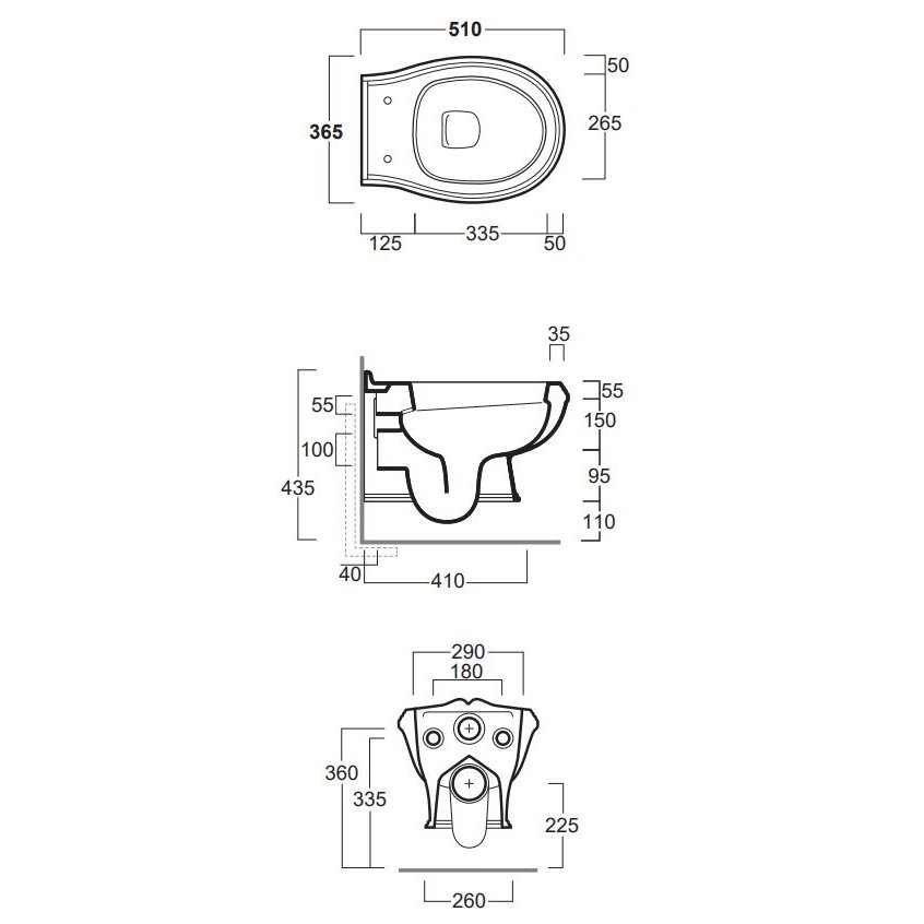 SIMAS ARCADE SET SANITARIO DE PARED SIN BORDE CON