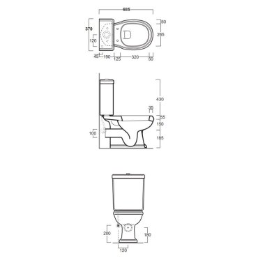 El set incluye: AR831 - inodoro monobloque con desagüe de pared Ficha técnica AR004 - asiento de madera en color nogal con cierre tradicional AR822 - cisterna con tapa D21 - batería de escape cromada de doble flujo