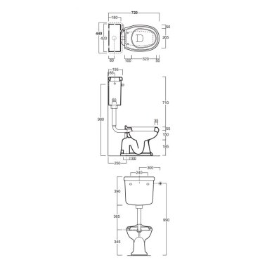 AR801 - inodoro tradicional con desagüe en el suelo Ficha técnica AR004 - tapa de inodoro de madera en color nogal con bisagras cromadas AR812B - cisterna mochila con tapa y agujero frontal D23 - mecanismo para mochila