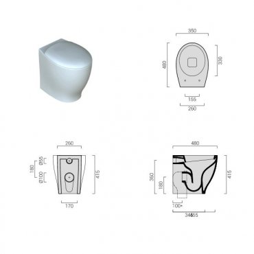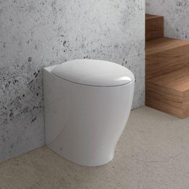 Pequeño inodoro a ras de pared con desagüe de pared que se puede convertir en el suelo mediante una curva técnica