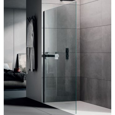 SAMO OPEN PUERTA FIJA DE 80 CM CON CRISTAL TRANSPARENTE, PERFIL NEGRO Y ESTANTE