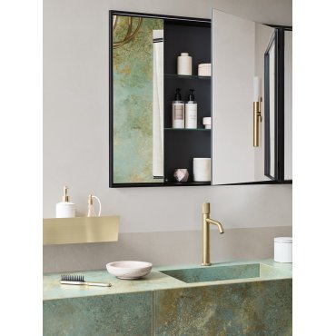 La colección Luxor de Arbi Arredobagno se caracteriza por un precioso marco en acabado cepillado que envuelve efectos visuales y táctiles inusuales.