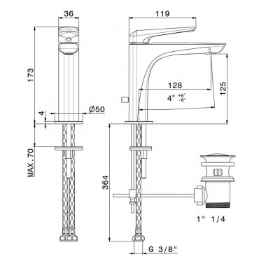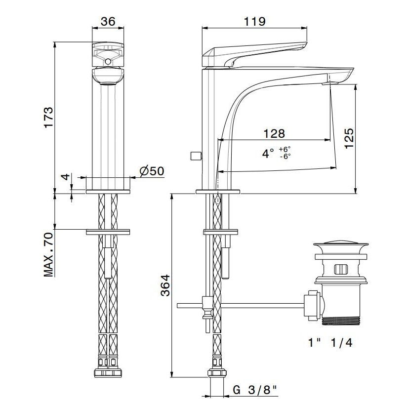 • GABOLI FRATELLI TEORIA MEZCLADOR PARA LAVABO CON DESAGÜE