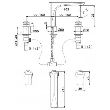 • TREEMME ARCHE 'MEZCLADOR DE LAVABO DE UNA PALANCA CASCADA 180 CM CROMO