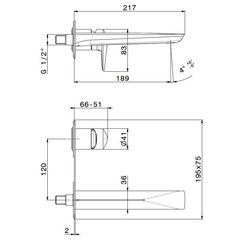 • QUADRO DESIGN HB MEZCLADOR MURAL DE 2 AGUJEROS CON CAÑÓN DE 250 MM
