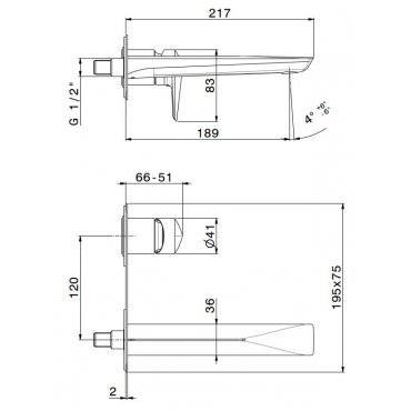 • PAINI COX MEZCLADOR MONOMANDO EMPOTRABLE PARA LAVABO CON PLACA Y CAÑÓN DE 215 CM