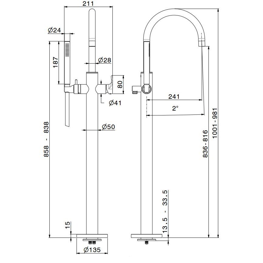 • NEWFORM B-EASY MEZCLADOR DE PIE PARA BAÑERA CON DESVIADOR Y SET DUCHA CROMO