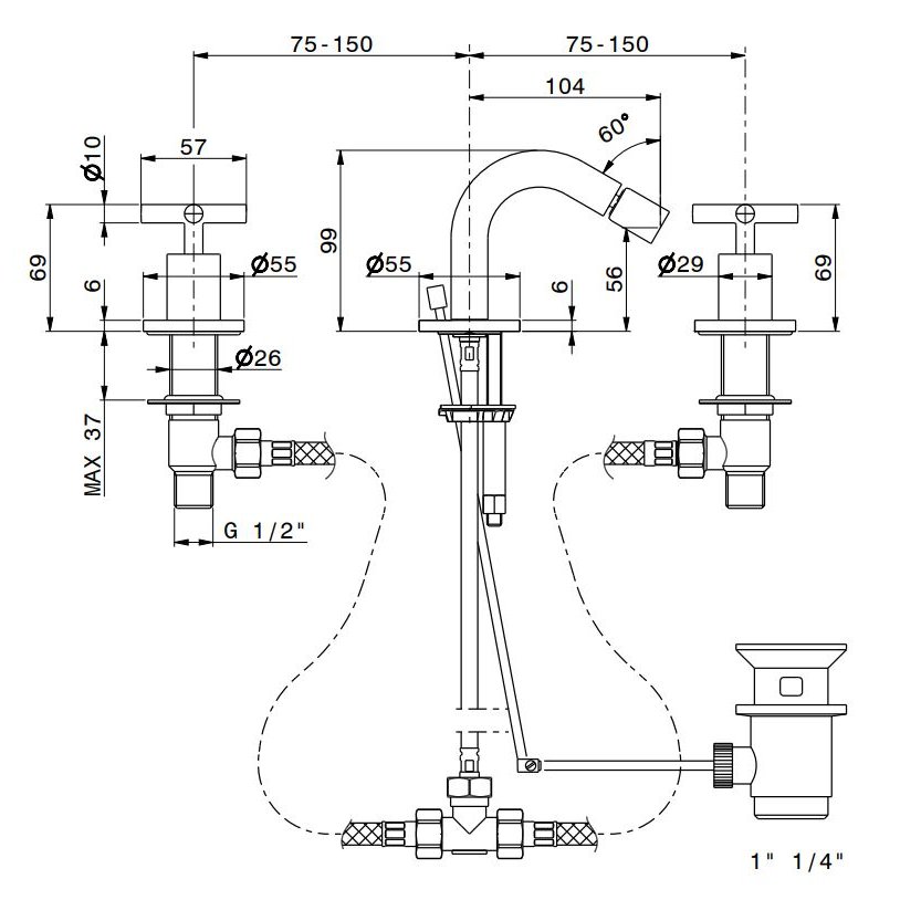 • GABOLI FRATELLI LOTUS MEZCLADOR PARA BIDÉ CAÑO ALTO GIRATORIO Y DESAGÜE