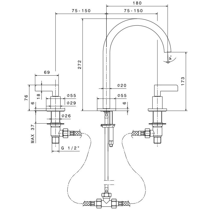 • NEWFORM DELUXE MEZCLADOR DE LAVABO DE 3 ORIFICIOS SIN DESAGÜE CROMO