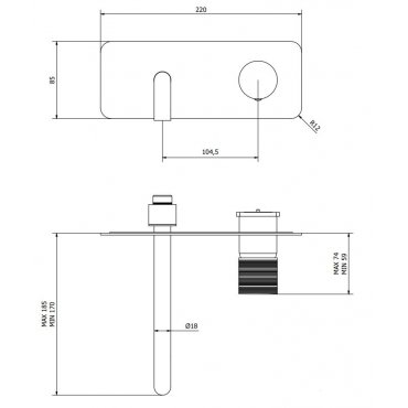 IB RUBINETTERIE VINILE MEZCLADOR MURAL CON DESAGÜE AUTOMÁTICO NEGRO MATE