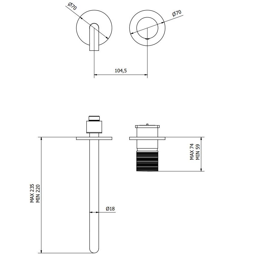 Los grabados de la palanca del grifo marcan el ritmo de toda la serie, que se aplica con coherencia a cada producto, encajando a la perfección tanto en proyectos residenciales como de contract.