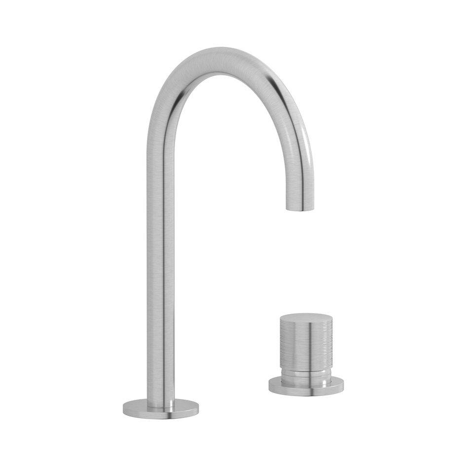 Los grabados de la palanca del grifo marcan el ritmo de toda la serie, que se aplica con coherencia a cada producto, encajando a la perfección tanto en proyectos residenciales como de contract.