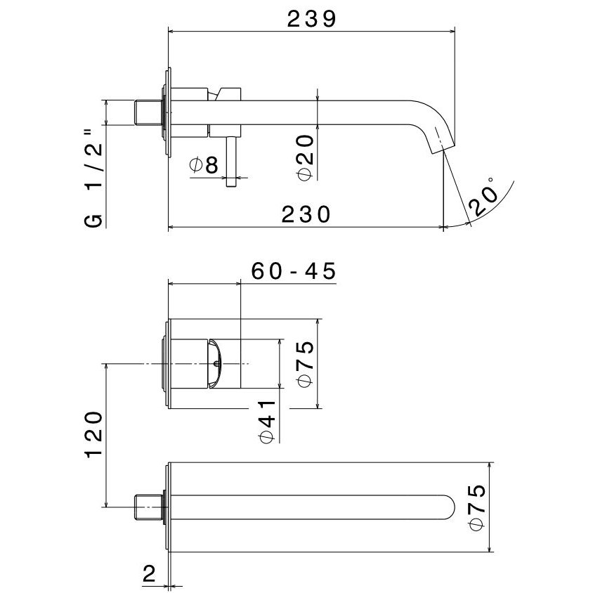 BUGNATESE SIMPLE MEZCLADOR DE PARED PARA LAVABO CAÑO 23 CM CROMO