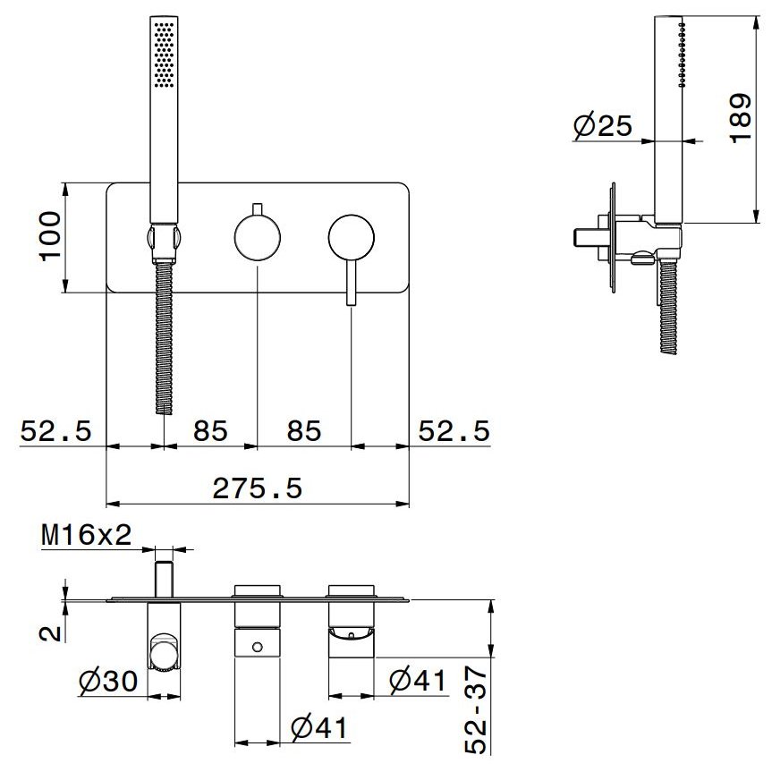 IB RUBINETTERIE GATSBY MEZCLADOR EMPOTRADO 2 VÍAS CON KIT DUCHA NÍQUEL CEPILLADO