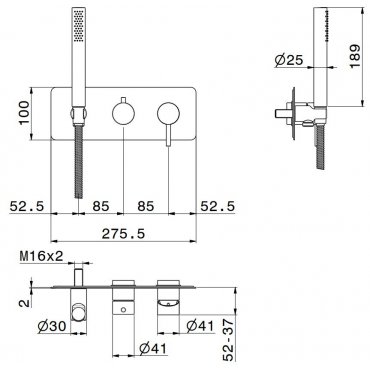 NEWFORM X-STEEL 316 MEZCLADOR DE DUCHA DE 2 VÍAS CON DESVIADOR Y SET DUCHA CROMO